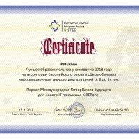 Европейская Ассоциация ВУЗов и преподавателей высшей школы HiSTES признала Международную КиберШколу KIBERone лучшим образовательным учреждением 2018 года на территории Евросоюза в сфере обучения информационным технологиям для детей от 6 до 14 лет. ⠀